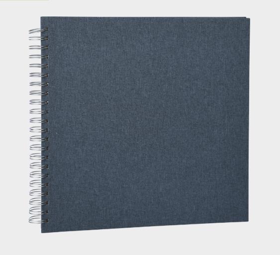 Dette spiralformede fotoalbumet er en moderne versjon av en klassisk presentasjon, og kombinerer elegant design med praktisk funksjonalitet. Det har et slitesterkt tekstilomslag med lerretsutseende og en kraftig, svart spiralinnbinding som gjør at albumet kan legges flatt for enkel visning og kreativ layout.