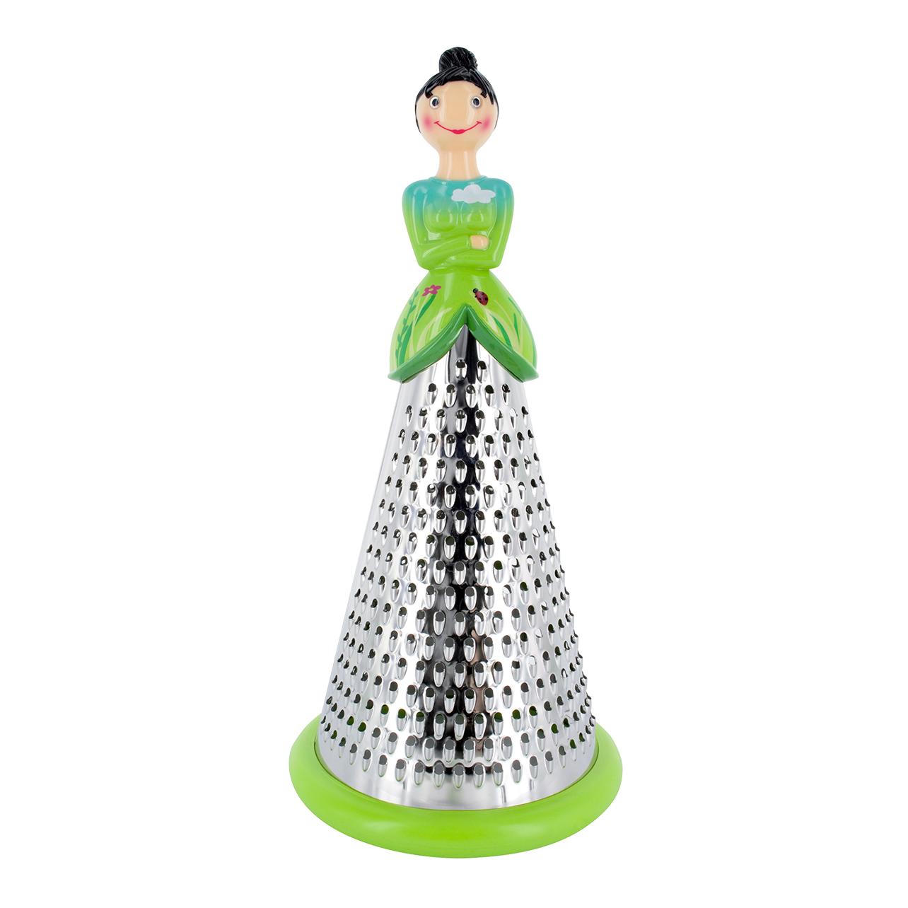 Jeg blir kalt «Ma Dame», og jeg får ofte komplimenter for min elegante og elegante oppførsel. Noen ganger sier folk lekent at den lange kjolen min kan være litt røff. Men vær trygg, jeg er leken og glad i nytelse, og jeg vil gjerne stikke ned fra hyllen din for å forsiktig rive ost, sjokolade eller litt sitrusskall. Med de tre hullene i kjolen min, vil du oppnå presis riving som vil forbedre rettene dine.