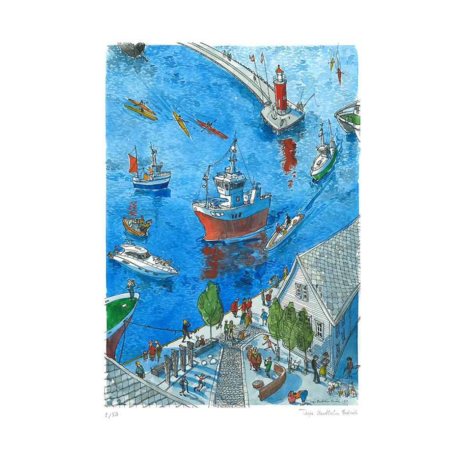 Terje Bratholm Eidsvik – Havnebassenget – reproduksjon – 40×50 – inkludert ramme